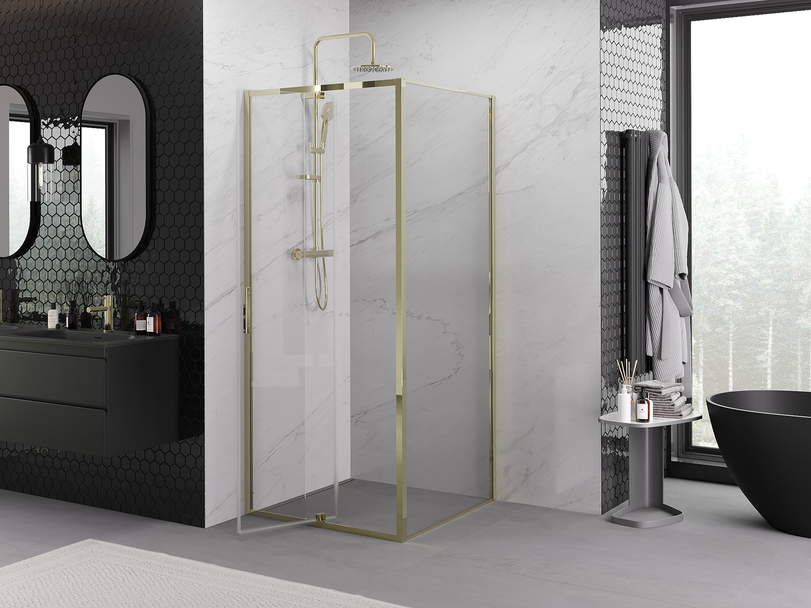 Mexen Exo nihajna tuš kabina 110 x 110 cm, prozorna, zlata - 819-110-110-50-00