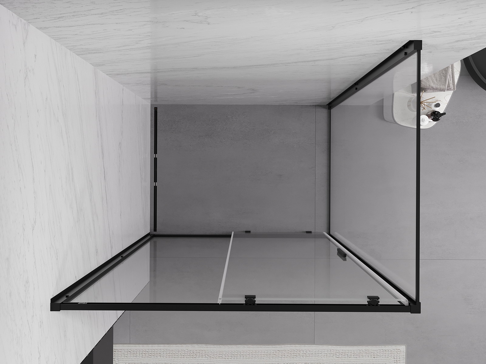Priročen in udoben ročaj je izdelan iz trpežnega in odpornega kovine. Modna oblika v kombinaciji z zaključkom, ki ustreza barvi profilov, daje celoti sodoben in stilski videz, poudarjajoč estetiko vsake kopalnice.