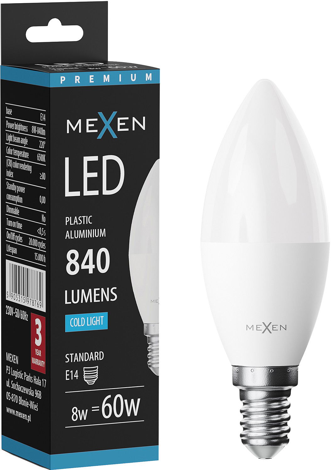 Mexen Nova LED žarnica E14, C37, 8W, Hladna - 6500K, 840 lm - L102-E14-0865-01