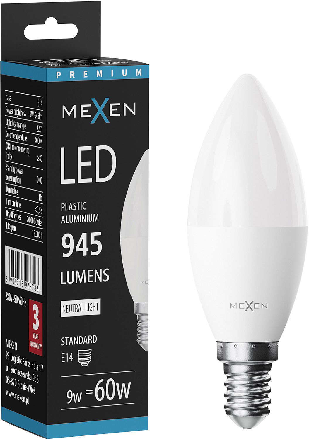 Mexen Nova LED žarnica E14, C37, 9W, Nevtralna - 4000K, 945 lm - L102-E14-0940-01