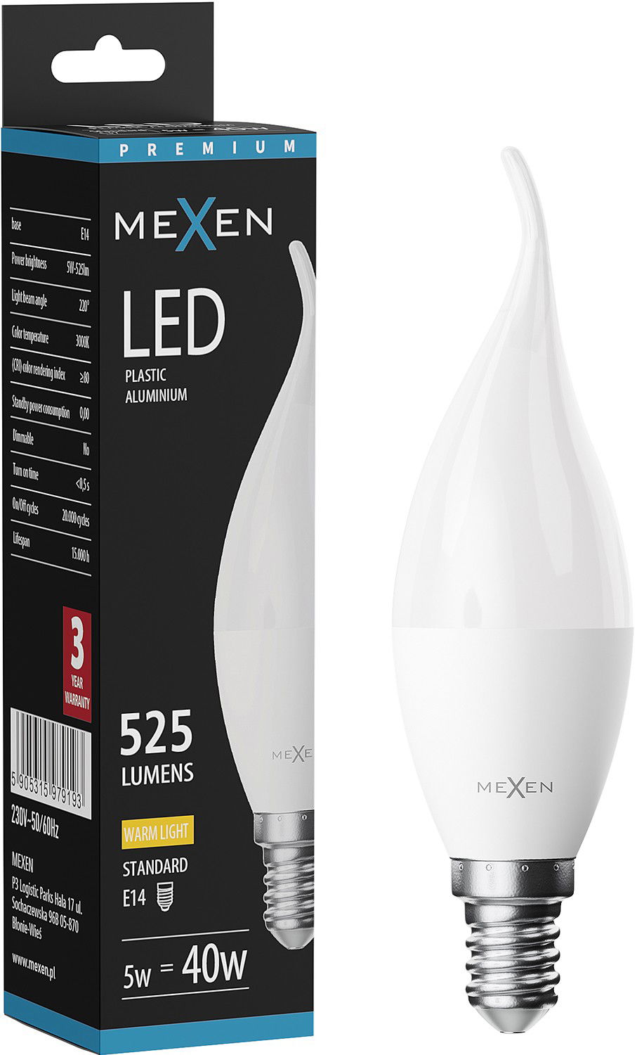 Mexen Nova LED žarnica plamen E14, C37, 5W, Topla - 3000K, 525 lm - L106-E14-0530-01