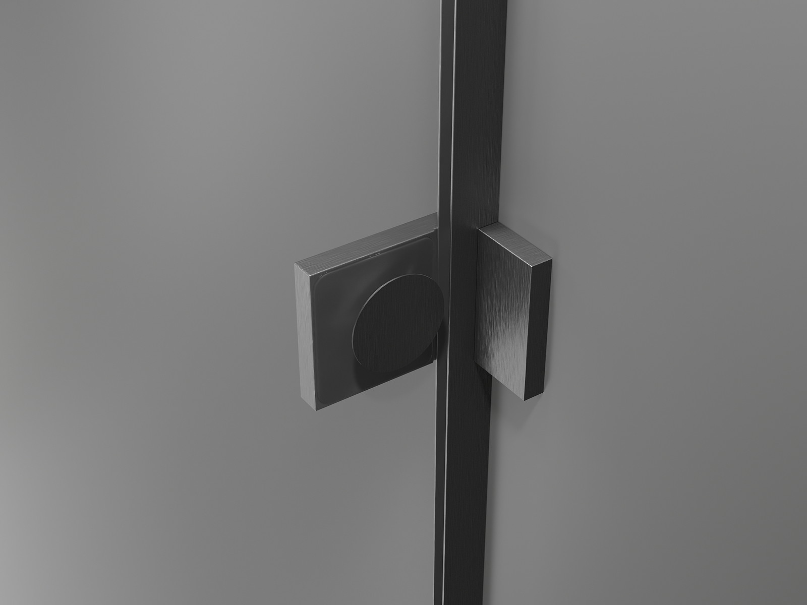 Priročen in udoben ročaj je izdelan iz trpežnega in odpornega kovine. Modna oblika v kombinaciji z zaključkom, ki ustreza barvi profilov, daje celoti sodoben in stilski videz, poudarjajoč estetiko vsake kopalnice.