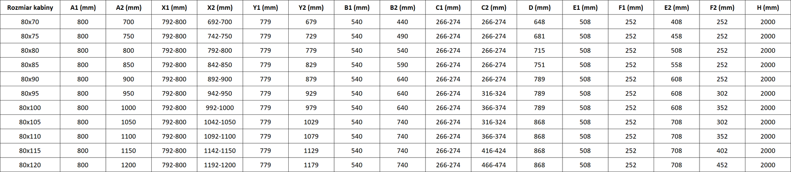 Tuš kabine, vrata in stene so standardno prilagojene za montažo na tuš kadi določenih dimenzij. Te dimenzije so navedene v imenu ali opisu izdelka. Vendar je treba upoštevati, da se dejanske mere elementov lahko nekoliko razlikujejo od nazivnih vrednosti. V primeru načrtovane montaže neposredno na tla je priporočljivo natančno preveriti zunanje mere in razporeditev elementov v skladu s tehnično risbo.