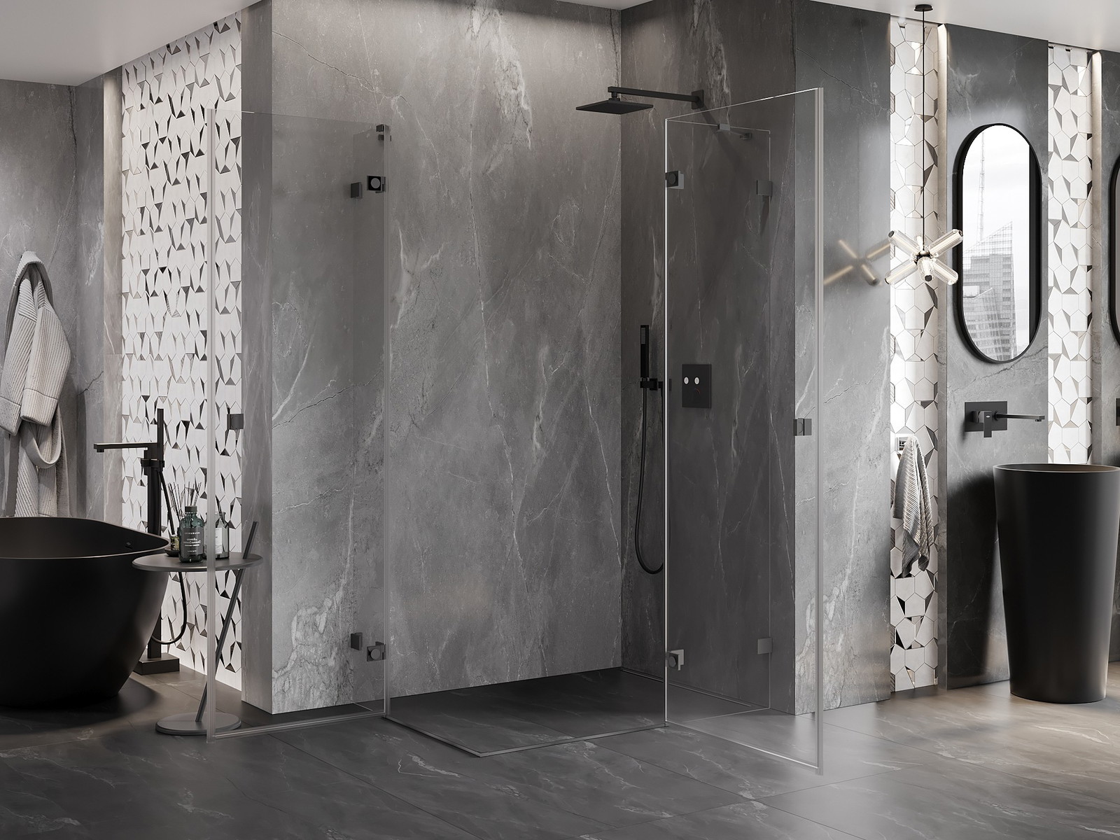 Mexen Lunar Duo je elegantna tuš kabina dimenzij 90x80 cm, z desnimi krilnimi vrati izvedbe v gun metal. Zahvaljujoč prozornemu kaljenemu steklu debeline 8 mm s prevleko za lažje čiščenje ponuja ne le elegantno, temveč tudi praktično rešitev za kopalnico. Aluminijasti profil z možnostjo prilagoditve omogoča montažo tako na tuš kadi kot na ploščicah. Montažni sistemi omogočajo odpravljanje neravnin stene, mehanizem dvigovanja vrat in medeninaste ključavnice pa zagotavljajo udobje uporabe.