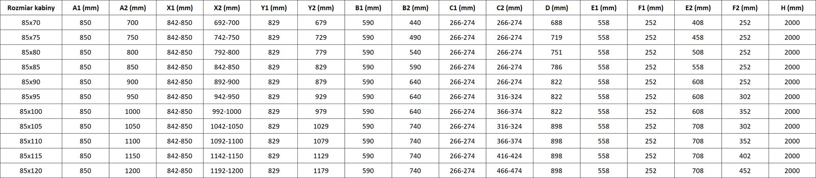 Tuš kabine, vrata in stene so standardno prilagojene za montažo na tuš kadi določenih dimenzij. Te dimenzije so navedene v imenu ali opisu izdelka. Vendar je treba upoštevati, da se dejanske mere elementov lahko nekoliko razlikujejo od nazivnih vrednosti. V primeru načrtovane montaže neposredno na tla je priporočljivo natančno preveriti zunanje mere in razporeditev elementov v skladu s tehnično risbo.