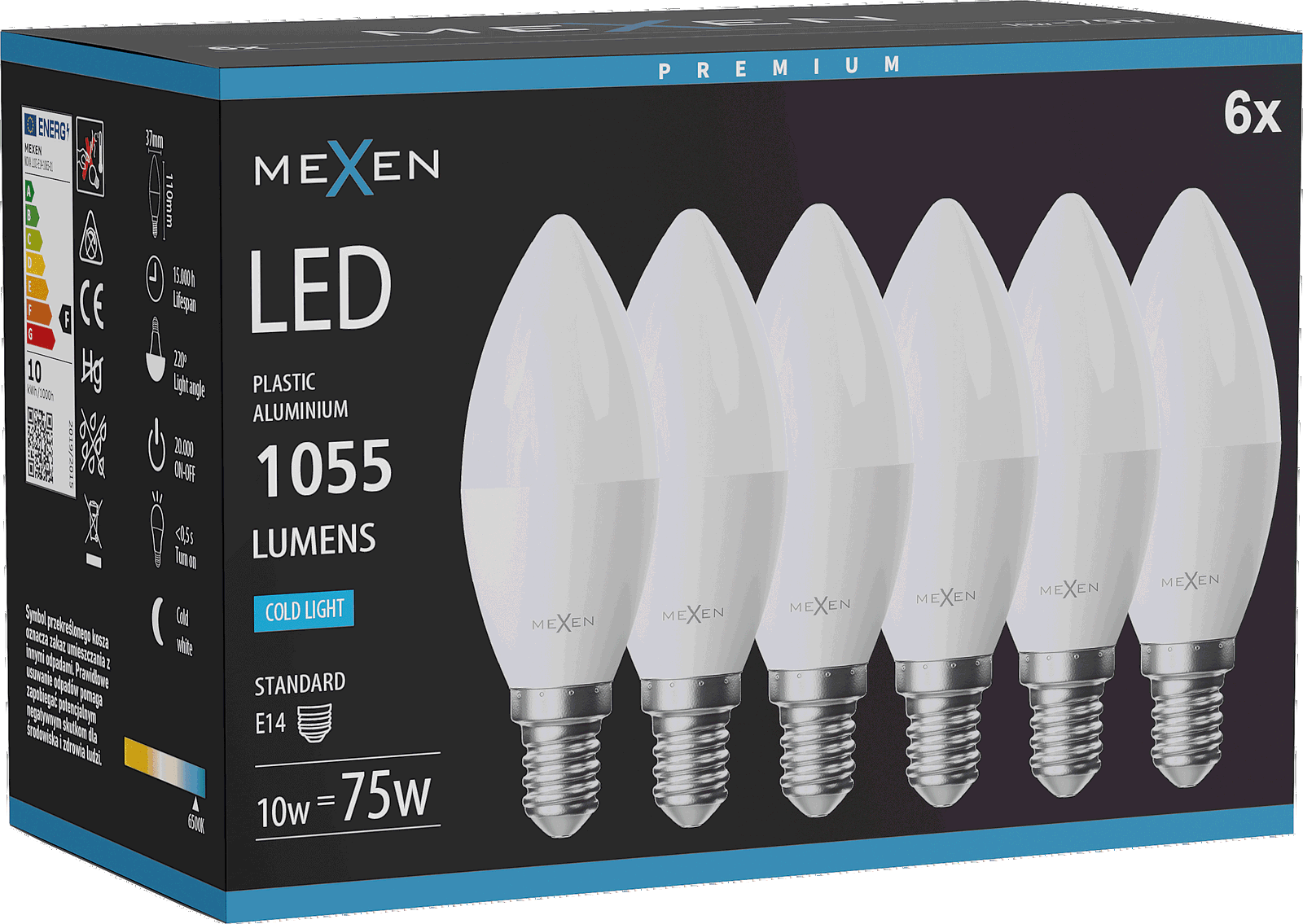 Mexen Nova 6x LED žarnica E14, C37, 10W, Hladna - 6500K, 1055 lm - L102-E14-1065-01x06