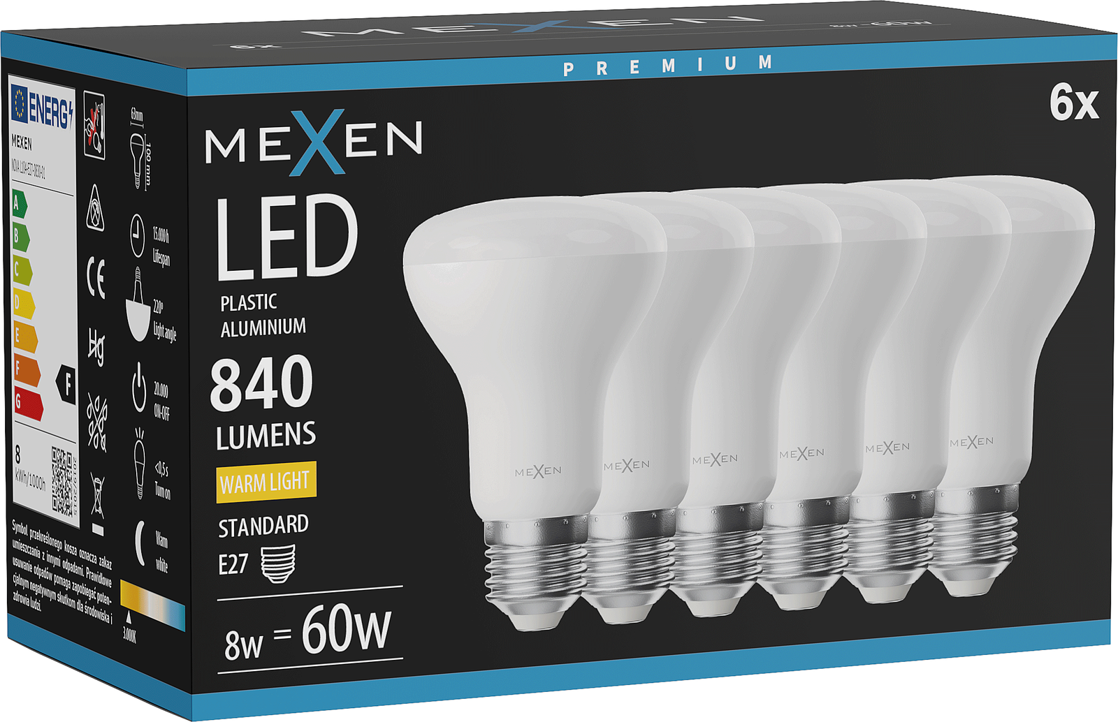 Mexen Nova 6x LED žarnica E27, R63, 8W, Topla - 3000K, 840 lm - L104-E27-0830-01x06