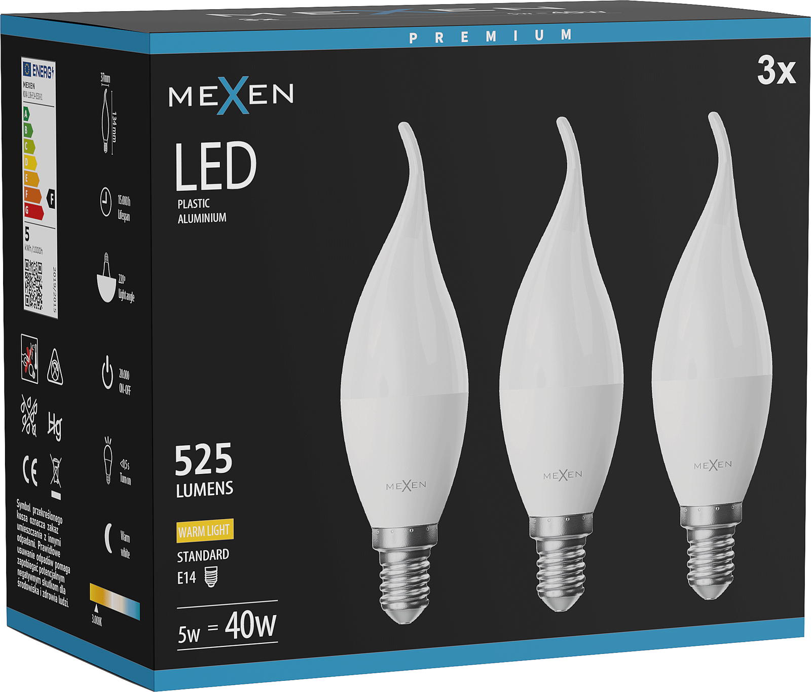 Mexen Nova 3x LED žarnica plamen E14, C37, 5W, Topla - 3000K, 525 lm - L106-E14-0530-01x03