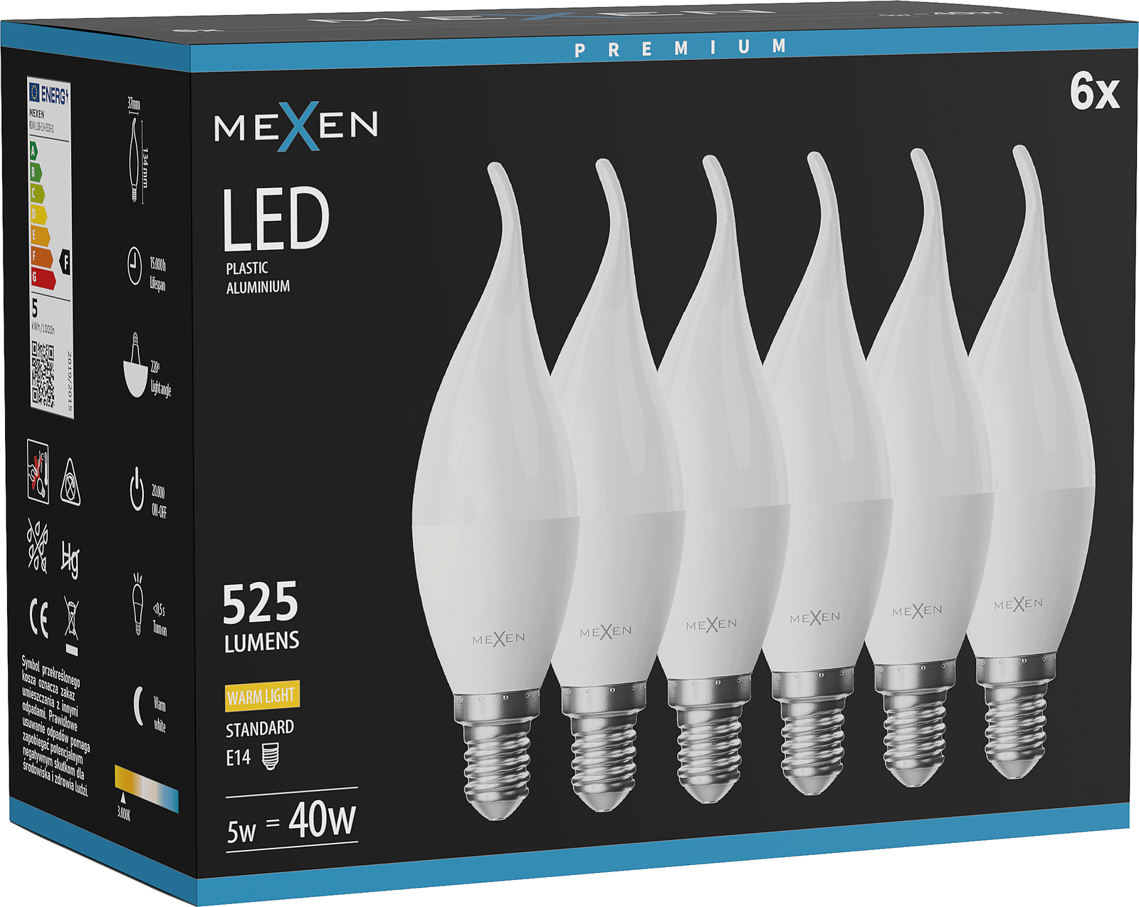 Mexen Nova 6x LED žarnica plamen E14, C37, 5W, Topla - 3000K, 525 lm - L106-E14-0530-01x06