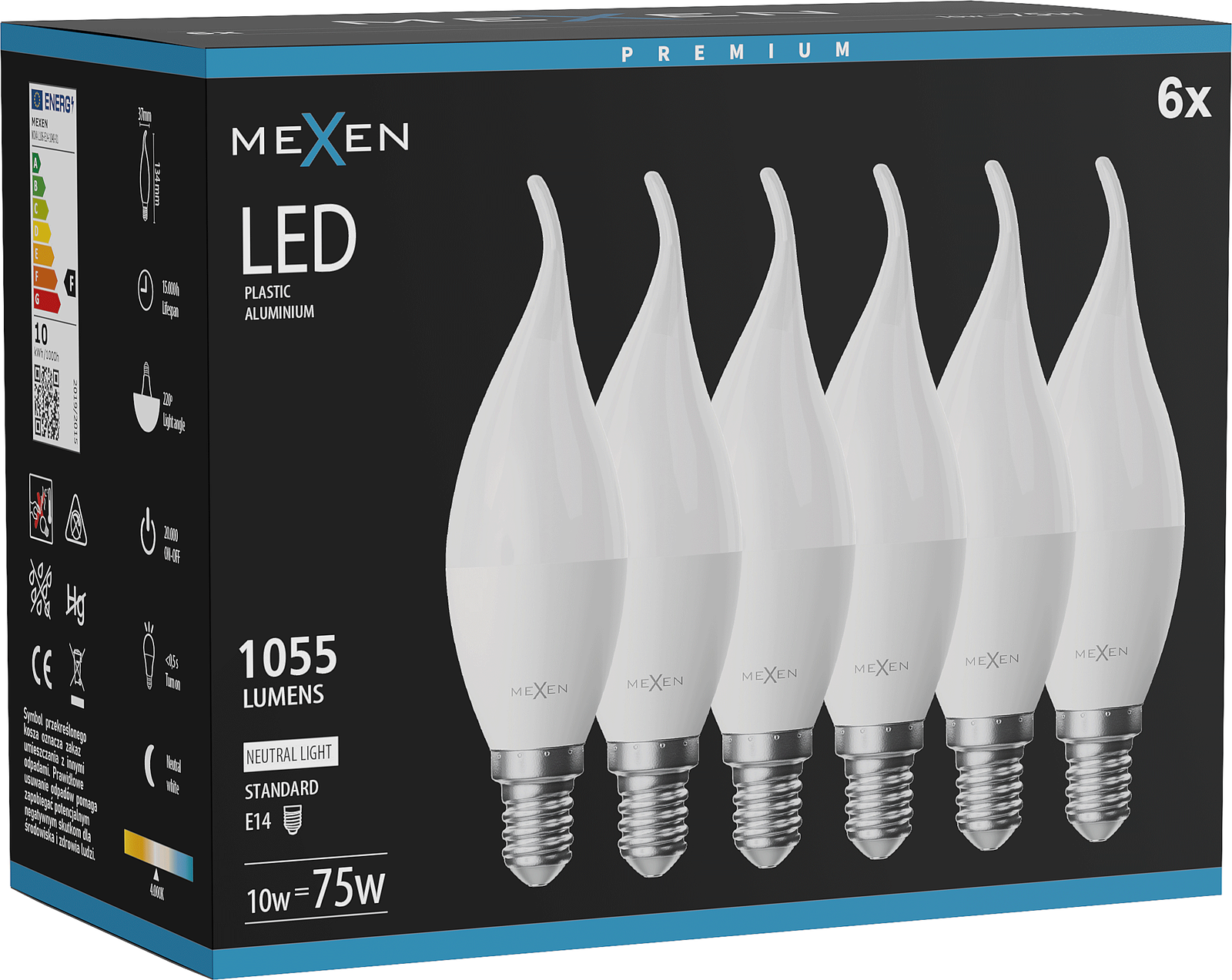 Mexen Nova 6x LED žarnica plamen E14, C37, 10W, Nevtralna - 4000K, 1055 lm - L106-E14-1040-01x06