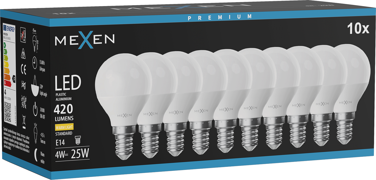 Mexen Nova 10x LED žarnica E14, G45, 4W, Topla - 3000K, 420 lm - L101-E14-0430-01x10