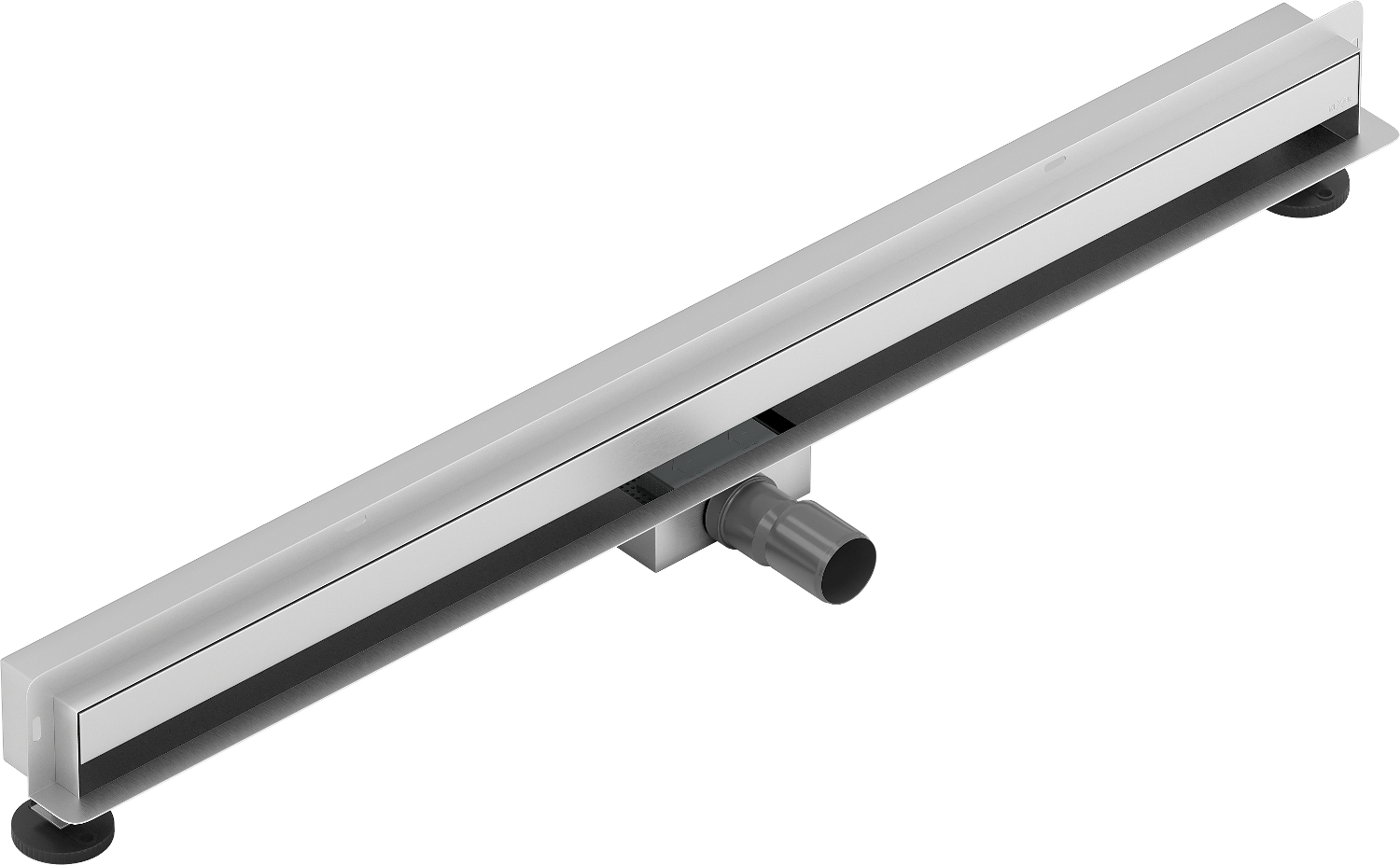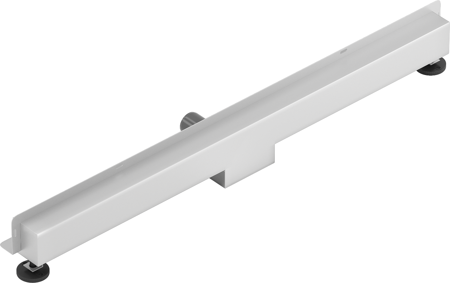 Odtočna cev je opremljena z nastavljivimi nogicami, ki omogočajo prilagoditev ustrezne višine odtoka in izravnavo na neravni površini. Na ta način je odtok še bolje prilagojen pogojem v določeni kopalnici.