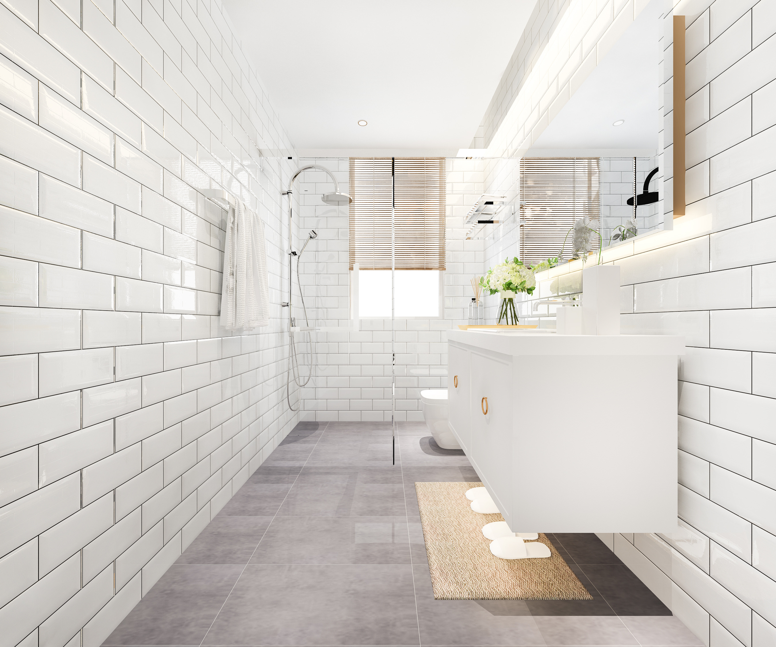 Bele, bež in svetlo sive bodo poskrbele, da se bo ozka kopalnica zdela bolj prostorna. Prav tako je dobro uporabiti preverjene optične trike, kot je uporaba dveh barv.