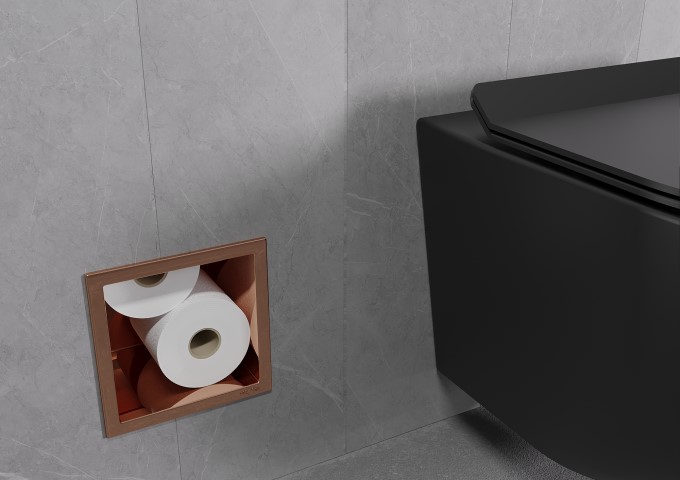 Je treba priznati, da je nosilec za WC papir v barvi rožnato zlato dokaj nenavadna izbira! Torej, v kakšnem notranjem prostoru se bo ta model znašel? Rožnato zlato lahko brez težav kombinirate z najpreprostejšimi barvami, kot so črna, bela ali siva. V njihovi družbi bo izstopal in pritegnil pogled. Kar zadeva vzorce, ta barva lahko ustvari zanimivo kombinacijo s ploščicami, ki predstavljajo mozaik ali posnemajo marmor. Takšna kombinacija bo pritegnila pozornost vsake osebe! Da bo notranjost videti kar se da najboljša, izberite tudi druge elemente v tej izjemni barvi. To je lahko tuš sistem, umivalniška pipa ali ogledalo, pa tudi manjši in preprosti dodatki, kot so razpršilnik za milo, skodelica za zobne ščetke, sveče ali brisače. Vendar ne pretiravajte s količino roza-zlatih elementov, saj je ta barva precej izrazita in lahko prevzame prostor. V ustrezni količini vam bo omogočila ustvariti edinstveno in edinstveno kopalnico, ki bo všeč vsaki osebi!